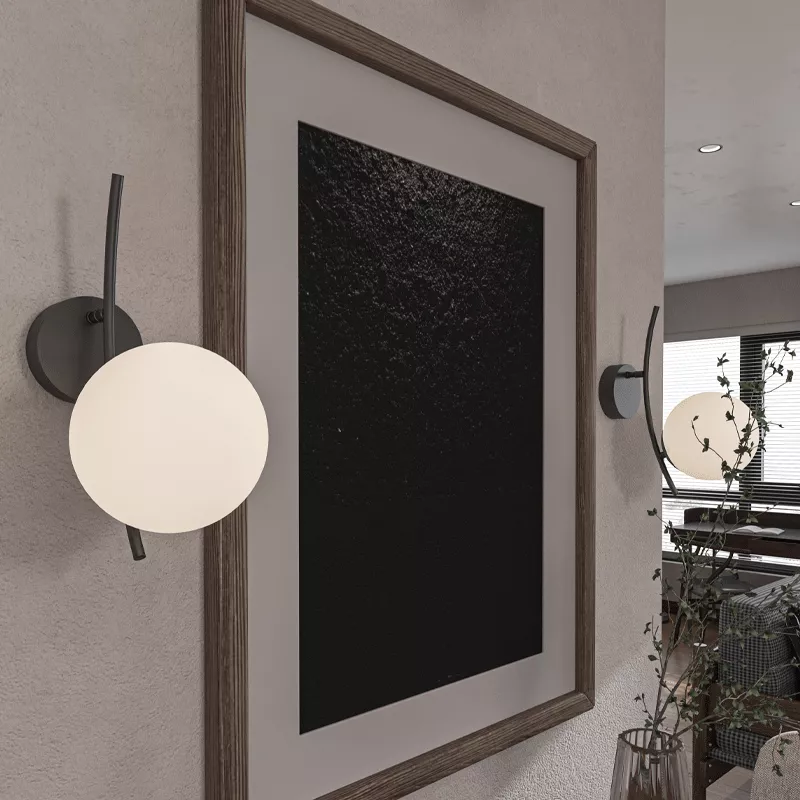 LAL Modern Beyaz Cam Küre Duvar Apliği