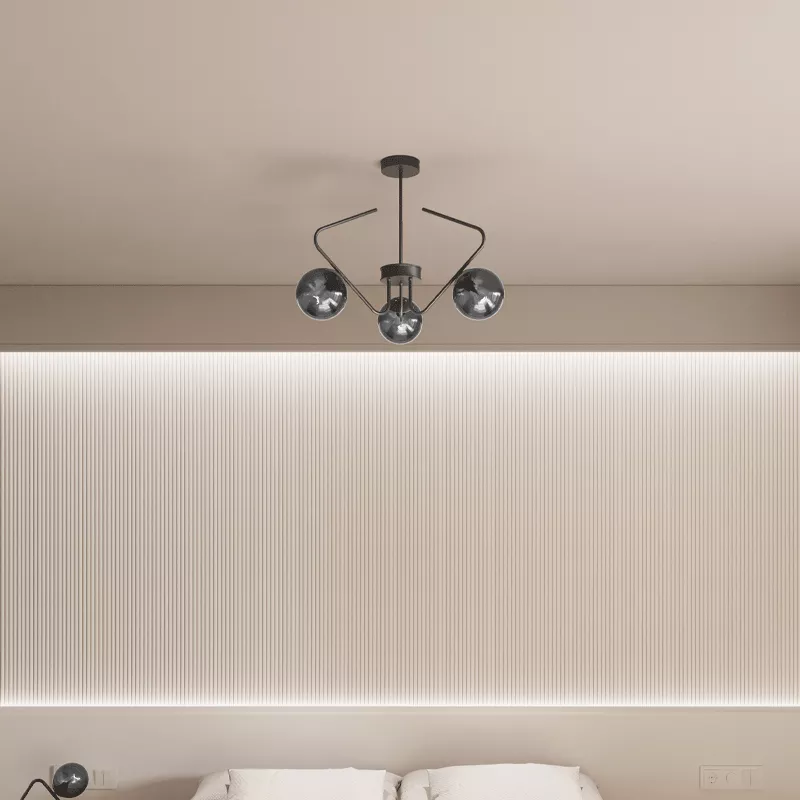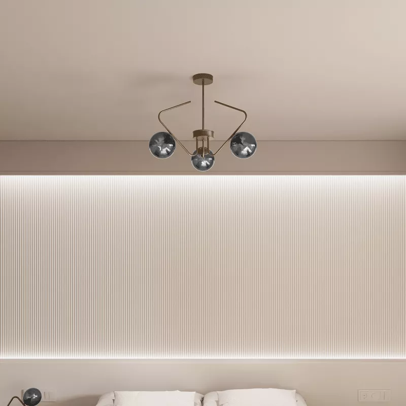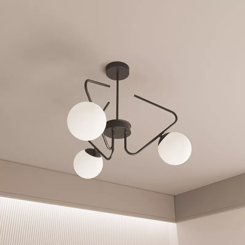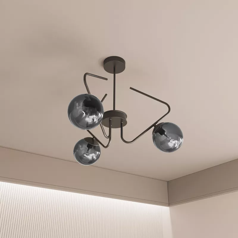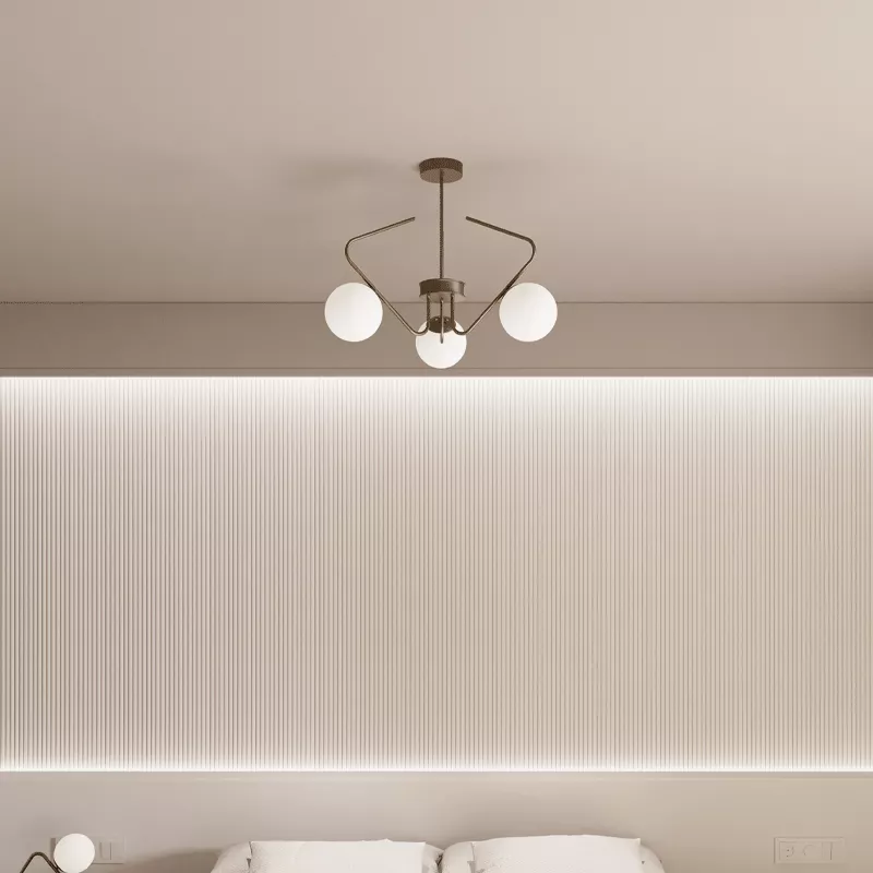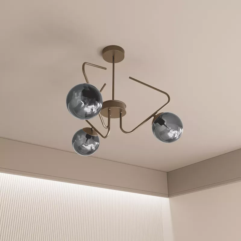 Cam küre başlıklar ışığı yumuşatarak dağıtır ve ortamda doğal bir aydınlık oluşturur. Üçlü yerleşim, ışığın tek noktada yoğunlaşmasını önler.