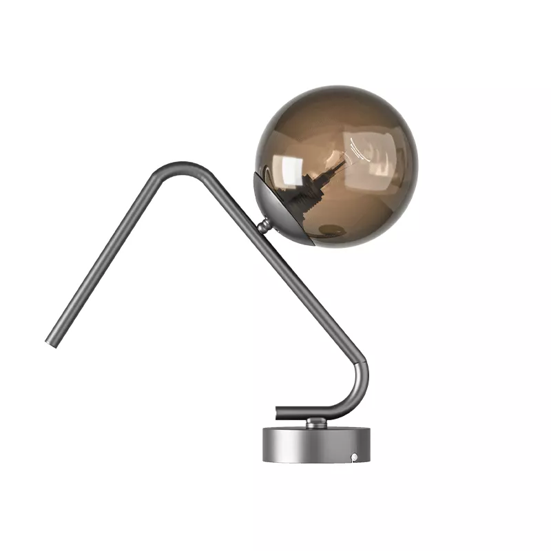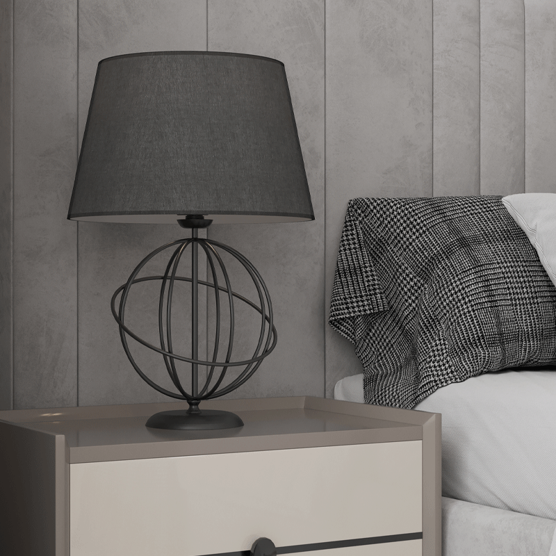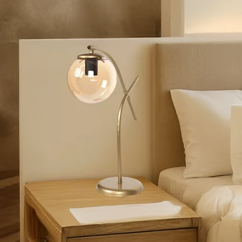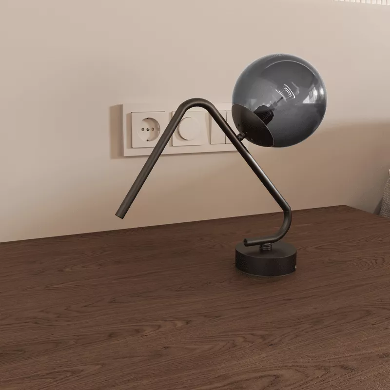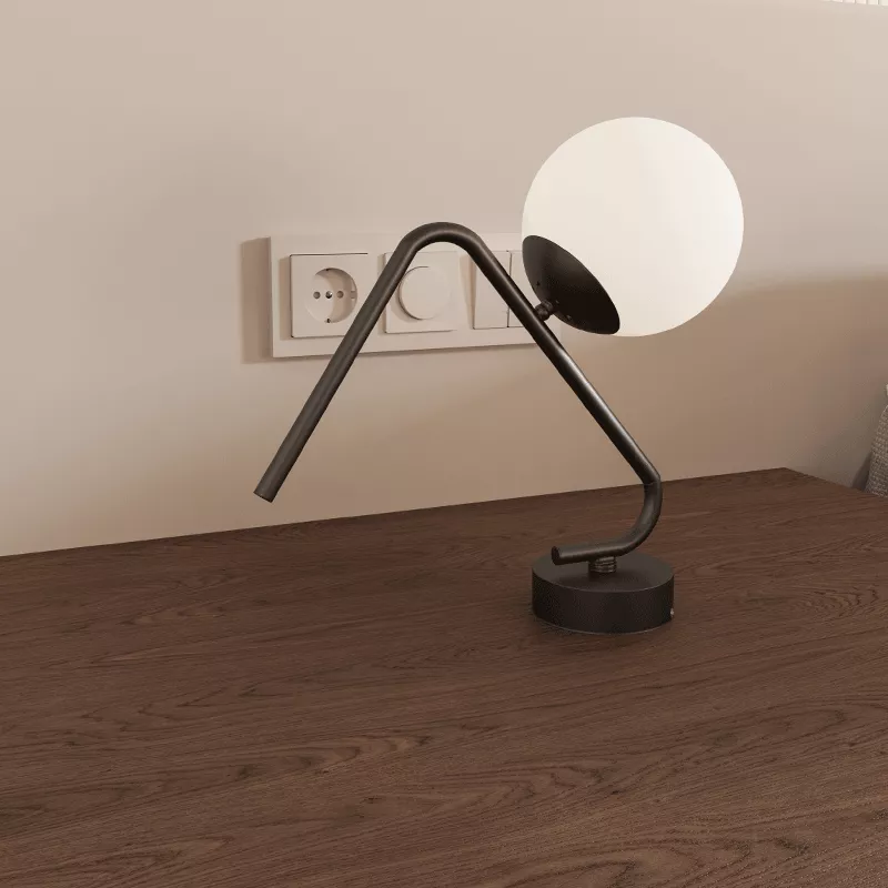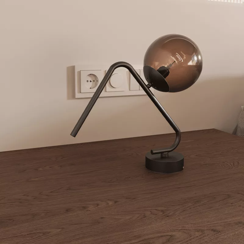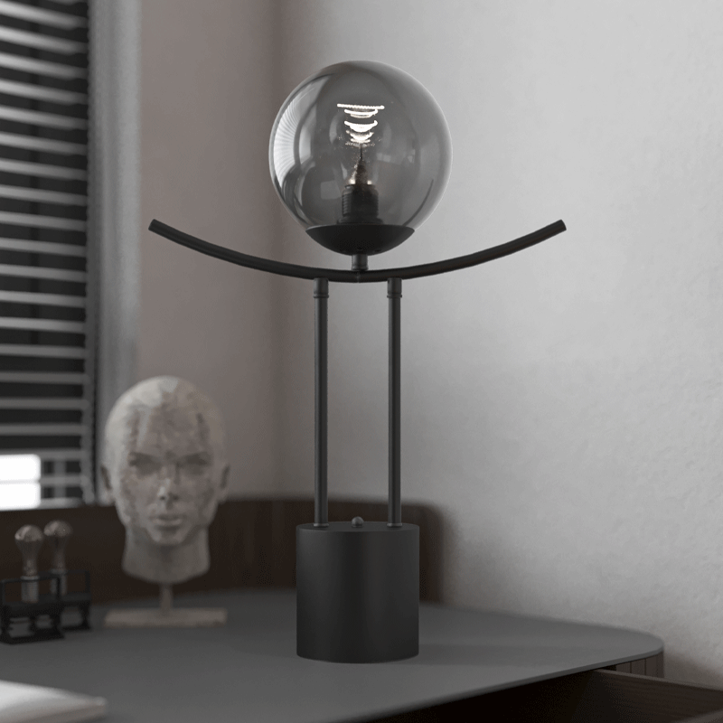 Metal gövde, lambaya sağlamlık ve net bir duruş kazandırırken cam küre ışığı yumuşatarak dengeli biçimde yayar. Bu kombinasyon hem dekoratif hem de konforlu bir kullanım sağlar.
