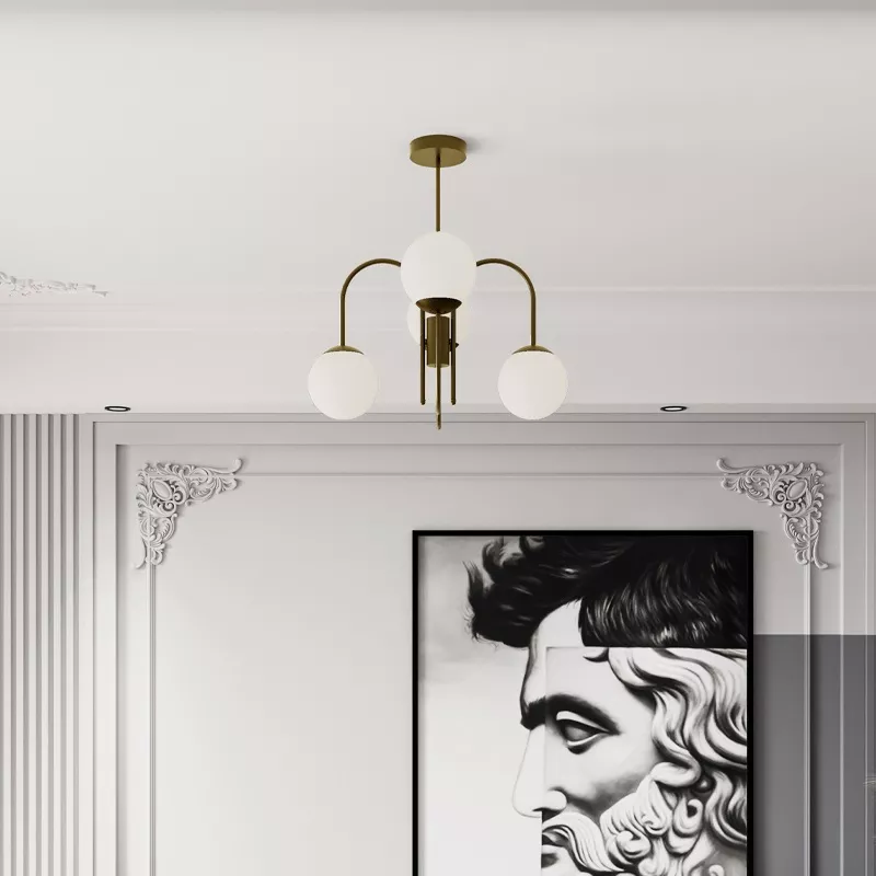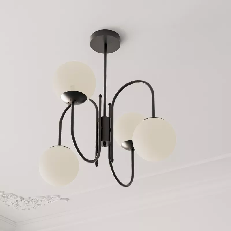 ZYRA Eskitme Metal 4'lü Beyaz Cam Küre Kıvrık Model Avize