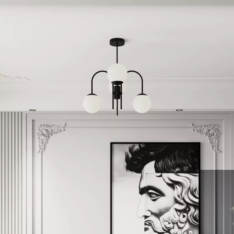 Beyaz cam küreler ışığı doğal ve homojen şekilde yayar. Ortamı karartmadan aydınlatır, ferah ve göz yormayan bir atmosfer sağlar.